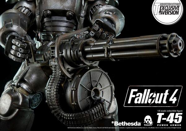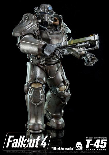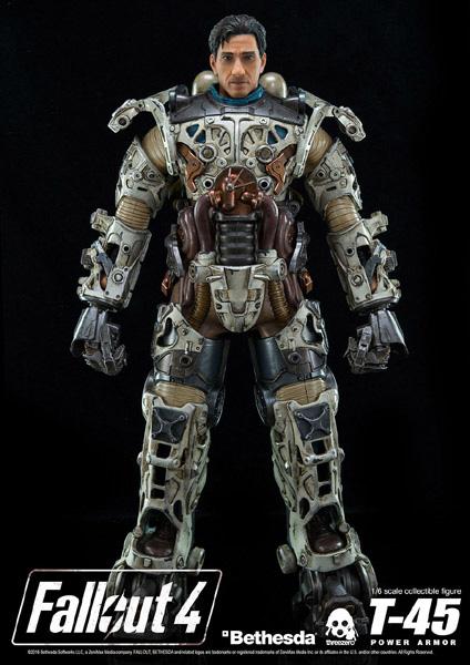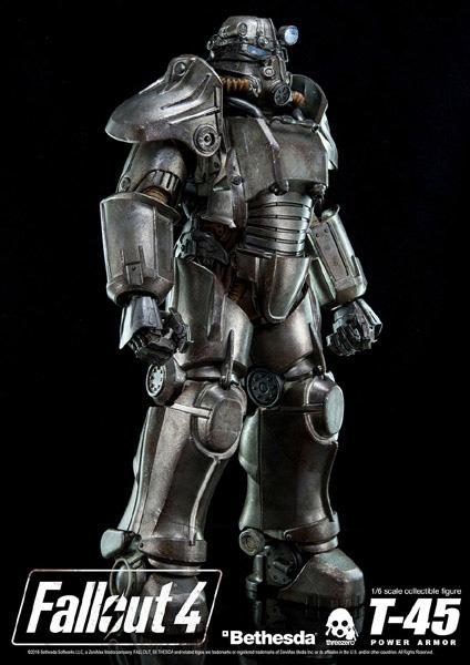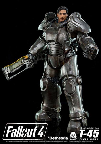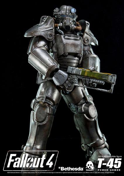Sideshow and Threezero are excited to announce the T-45 Fallout 4 Collectible Figure. The T-45 stands approximately 14.5 inches tall with incredible details and over 35 articulated parts. Featuring an interchangeable male head and helmet that includes LED light-up functions. All outer-armor pieces are detachable and weathered with incredible paint application based on the appearance in the video game.
