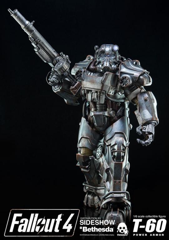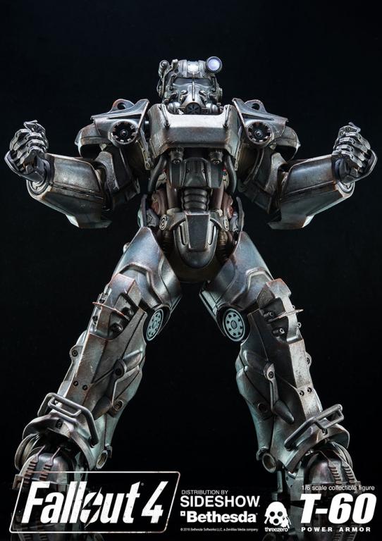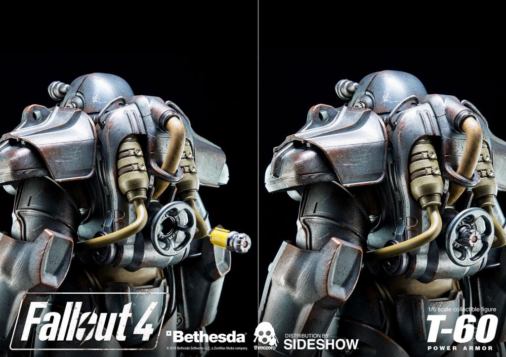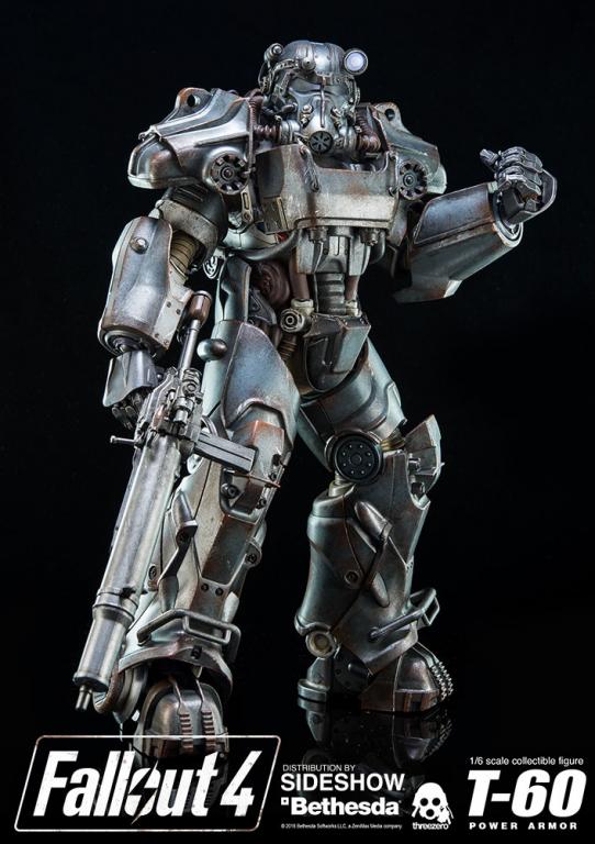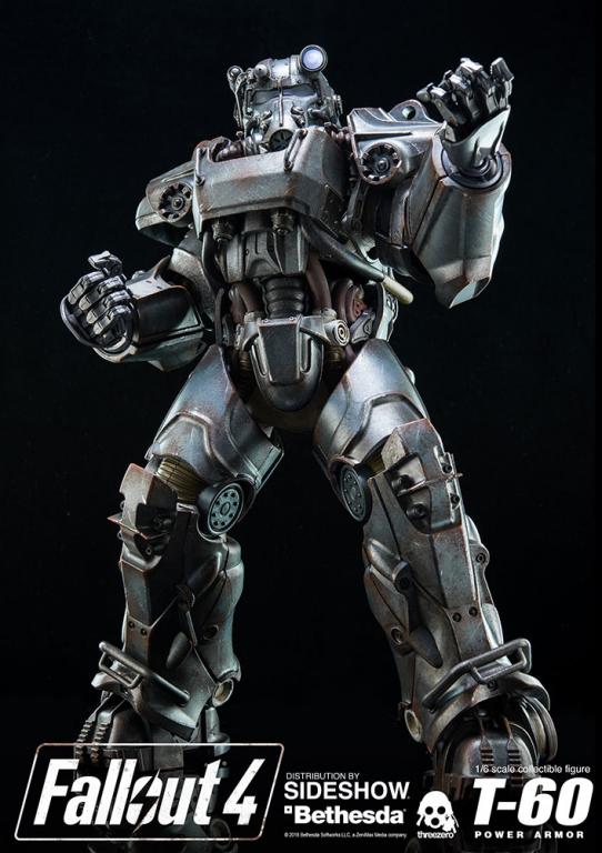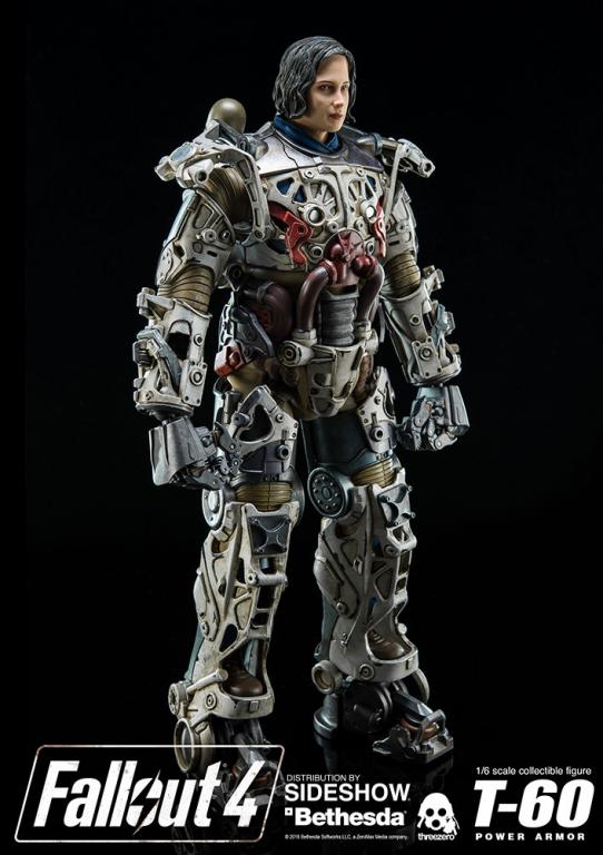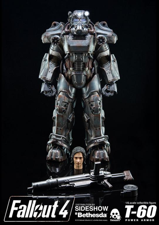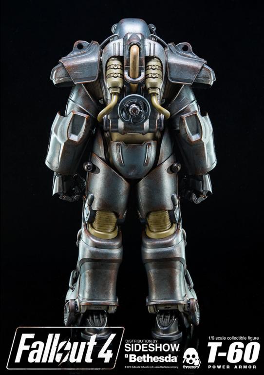 Sideshow and Threezero are excited to announce the T-60 Power Armor Fallout 4 Sixth Scale Collectible Figure. The T-60 Power Armor stands approximately 14.5 inches tall with incredible details and over 35 articulated parts. Featuring an interchangeable female head and a helmet with LED light-up functions. All outer-armor pieces are detachable and weathered with incredible paint application based on the appearance in the video game.