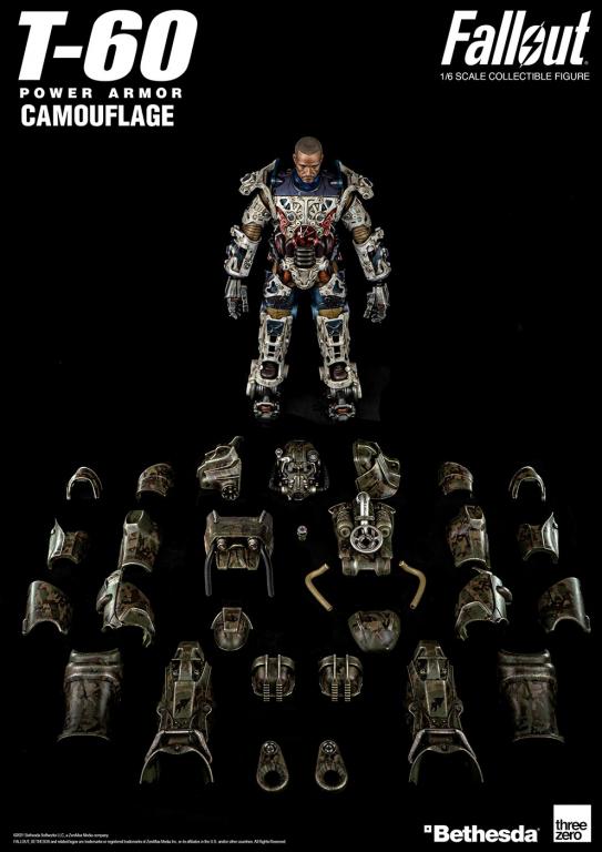 Threezero's next Fallout Power Armor is coming! The Fallout - 1/6 T'60 Camouflage Power Armor will be available for pre-order at ThreeZero, on 25th June 2021, 9:00 am HKT (previous day, 8:00 pm EST)! Fallout - 1/6 T'60 Camouflage Power Armor is a fully-articulated collectible figure, its pieces are completely interchangeable with all previous threezero 1/6 Fallout figures.