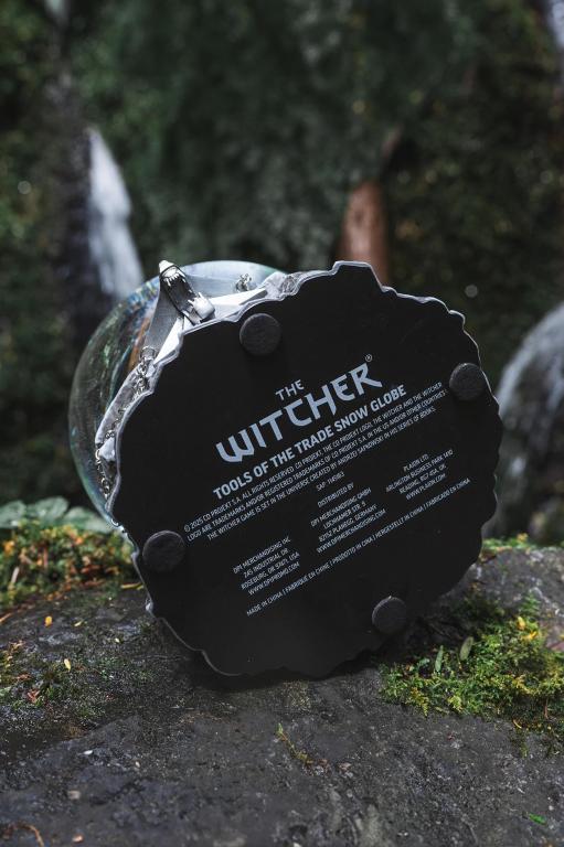 Geralt’s trusty tools are available here as detailed miniatures with an intricate chain that links the two swords together. Give the globe a shake to watch the White Frost swirl around and complete the scene!