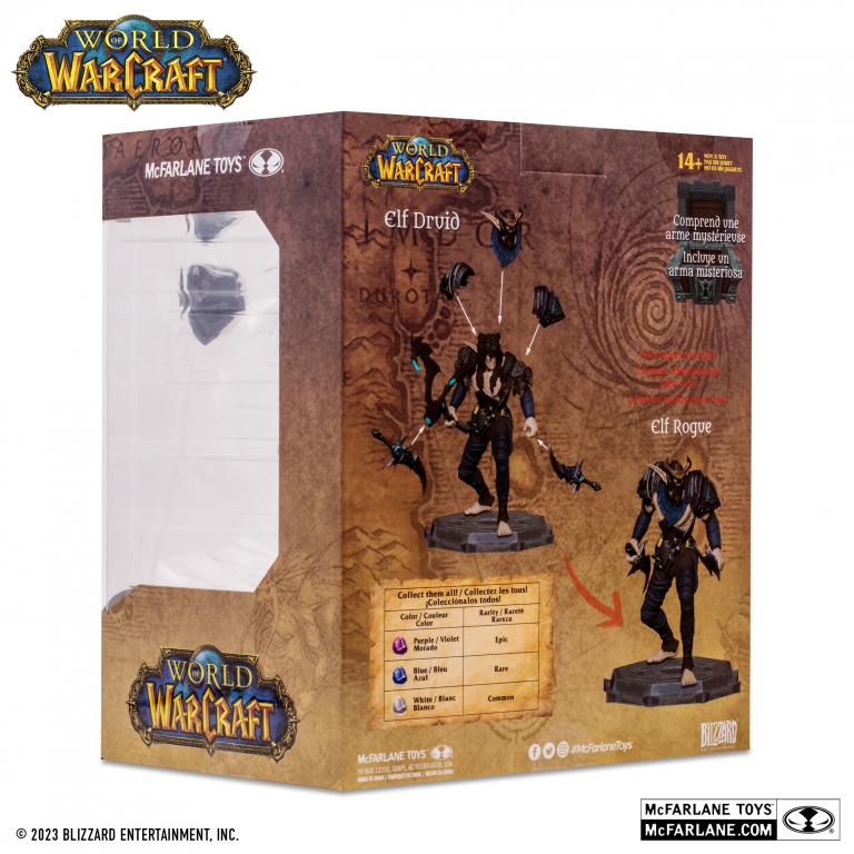 - NIGHT ELF: DRUID/ROGUE comes 2 weapons, 2 interchangeable armor pieces, extra head and environmental base.