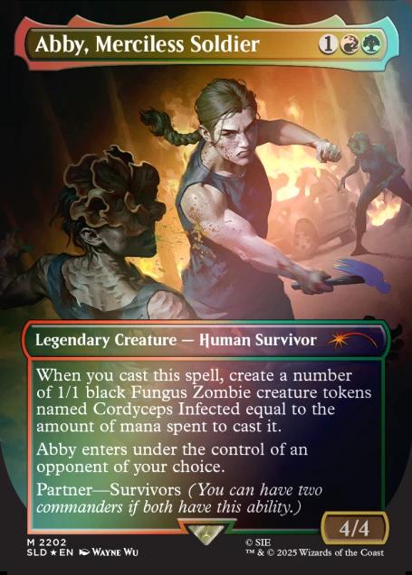 NOTE: The “Survivors” partner mechanic allows the Joel and Ellie cards from Secret Lair x The Last of Us Part I to be played with the Abby and Ellie cards from Secret Lair x The Last of Us Part II. This means that technically, Ellie can partner with her younger self (and Abby can partner with Joel if you’re a full monster).